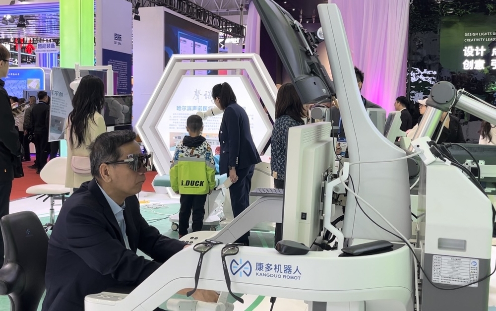 “很好操作,也很稳定,医生的手好像被‘延长’了,太神奇了。”在康多机器人展台,手术机器人的机械臂正模拟着精密的缝合手术,体验者不禁发出感叹。手术机器人精准“操刀”的画面吸引了众多客商的驻足。