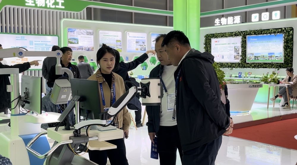 大庆圣泉展出的非粮纤维素乙醇装置前,工作人员说:“我们建设的百万吨生物质精炼一体化项目,攻克了秸秆纤维素、半纤维素、木质素高效分离的难题,可生产生物质树脂炭、硬碳负极材料、糠醛等上百种产品。”